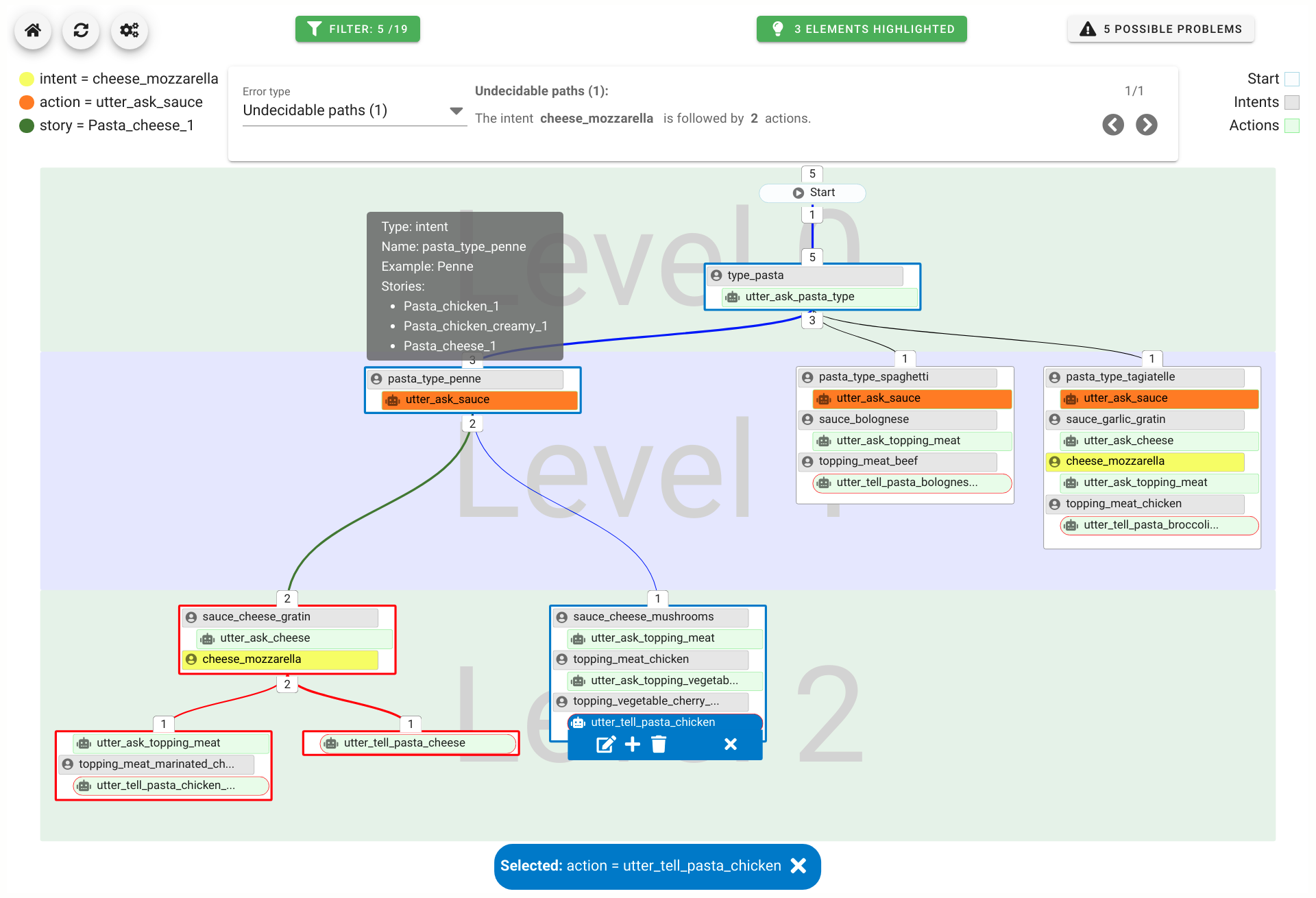 A chatbot can automatically process a user's request, e.g. to provide a requested information. In doing so, the user starts a conversation with the chatbot and can specify the request by further inquiry. Due to the developments in the field of NLP in recent years, algorithmic text comprehension has been significantly improved. As a result, chatbots are increasingly used by companies and other institutions for various tasks such as order processes or service requests. Knowledge bases are often used to answer users queries, but these are usually curated manually in various text files, prone to errors. Visual methods can help the expert to identify common problems in the knowledge base and can provide an overview of the chatbot system. In this paper, we present Chatbot Explorer, a system to visually assist the expert to understand, explore, and manage a knowledge base of different chatbot systems. For this purpose, we provide a tree-based visualization of the knowledge base as an overview. For a detailed analysis, the expert can use appropriate visualizations to drill down the analysis to the level of individual elements of a specific story to identify problems within the knowledge base. We support the expert with automatic detection of possible problems, which can be visually highlighted. Additionally, the expert can also change the order of the queries to optimize the conversation lengths and it is possible to add new content. To develop our solution, we have conducted an iterative design process with domain experts and performed two user evaluations. The evaluations and the feedback from our domain experts have shown that our solution can significantly improve the maintainability of chatbot knowledge bases.